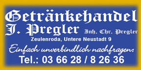 | Getränkehandel J. Pregler Untere Neustadt 9 07937 Zeulenroda-Triebes Tel. 036628/82636 |